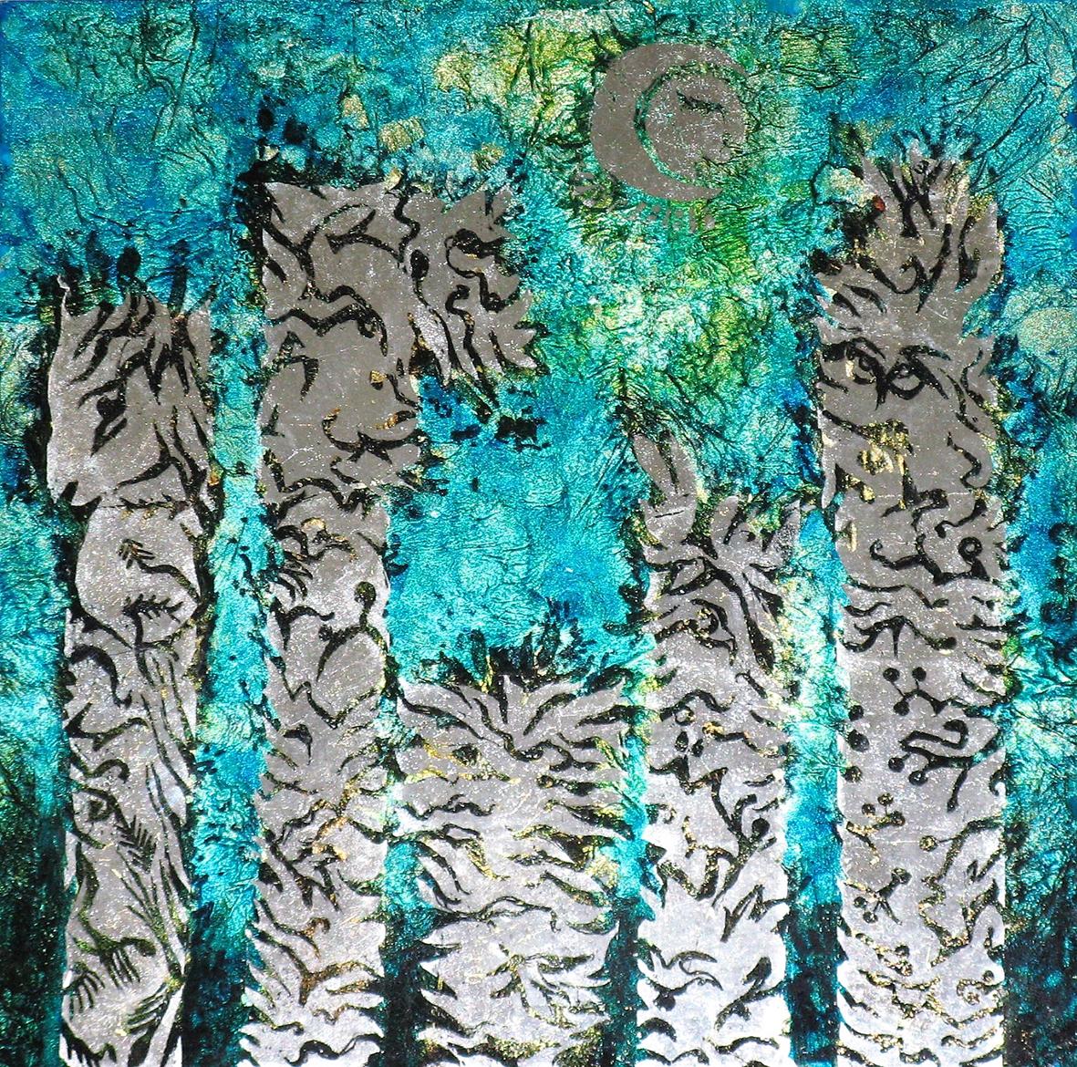 The technique is very traditional and requires not only the making of paints yourself, the application of metal foils that are etched and the use of different solvents to allow the different layers to flow together or not depending the desired effect.